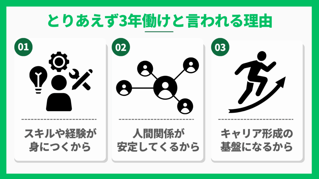 ここでは、「とりあえず3年」と言われる主な理由を3つの観点から解説します。