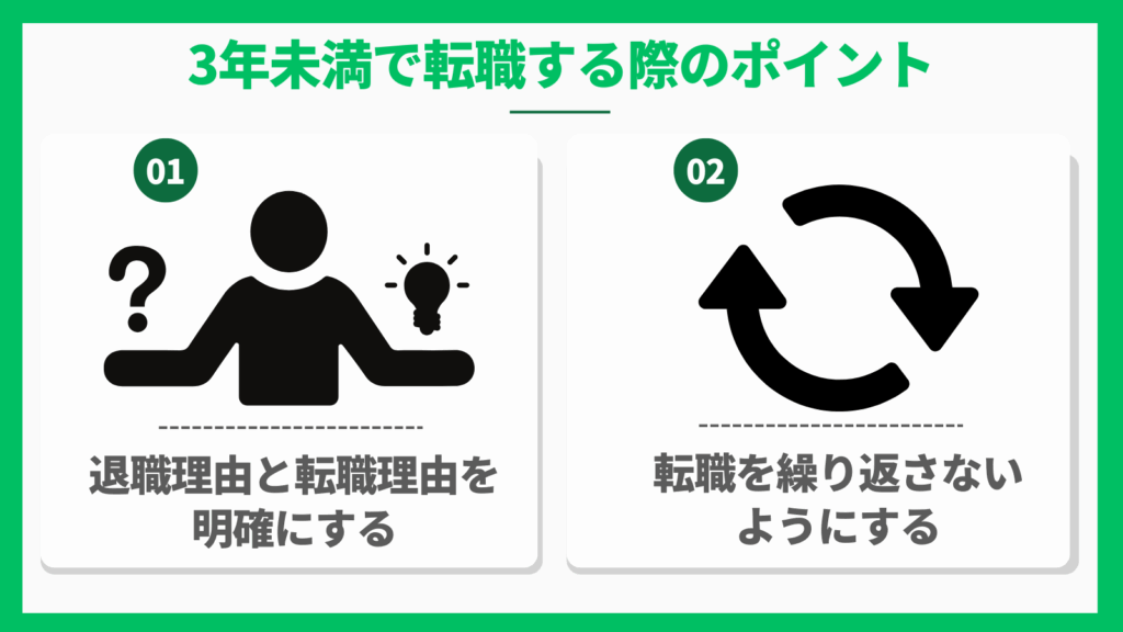 ここでは、3年未満で転職する際に特に押さえておきたい重要なポイントを紹介します。