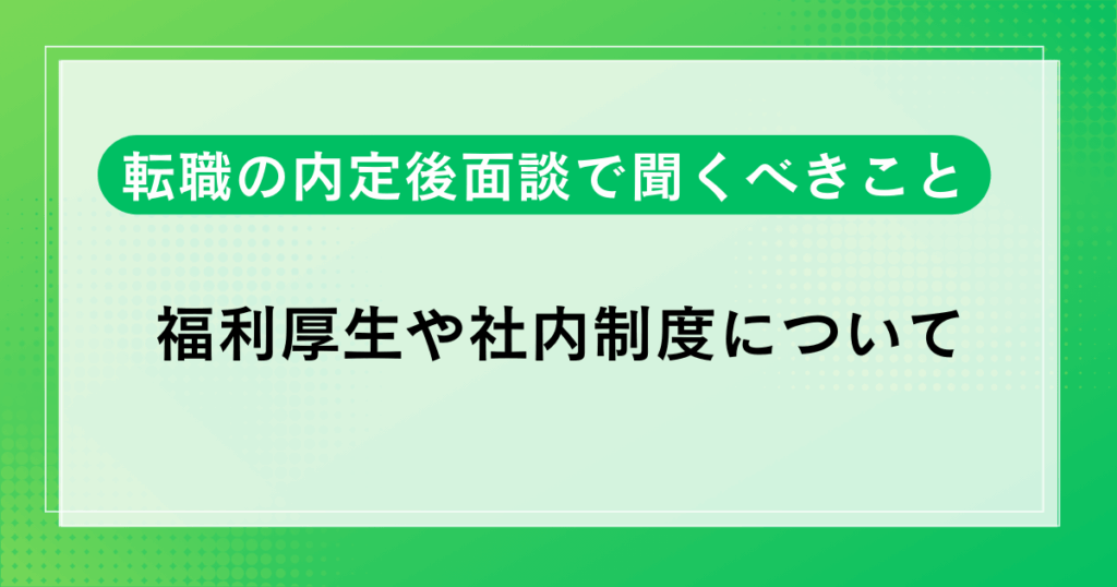 入社後の福利厚生や社内制度ついても、内定後の面談で聞くべき内容の一つです。