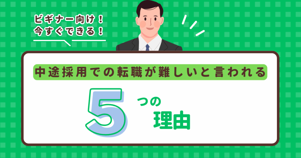 さらには、中途採用だと転職が難しいと言われる理由や、転職できる人の特徴も解説しているので、ぜひ参考にしてくださいね。
