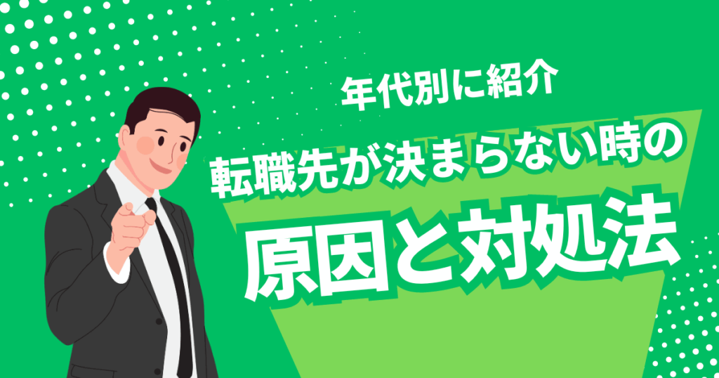 そんな方のために、本記事では転職先が決まらない時の原因と対処法を年代別に紹介していきます。