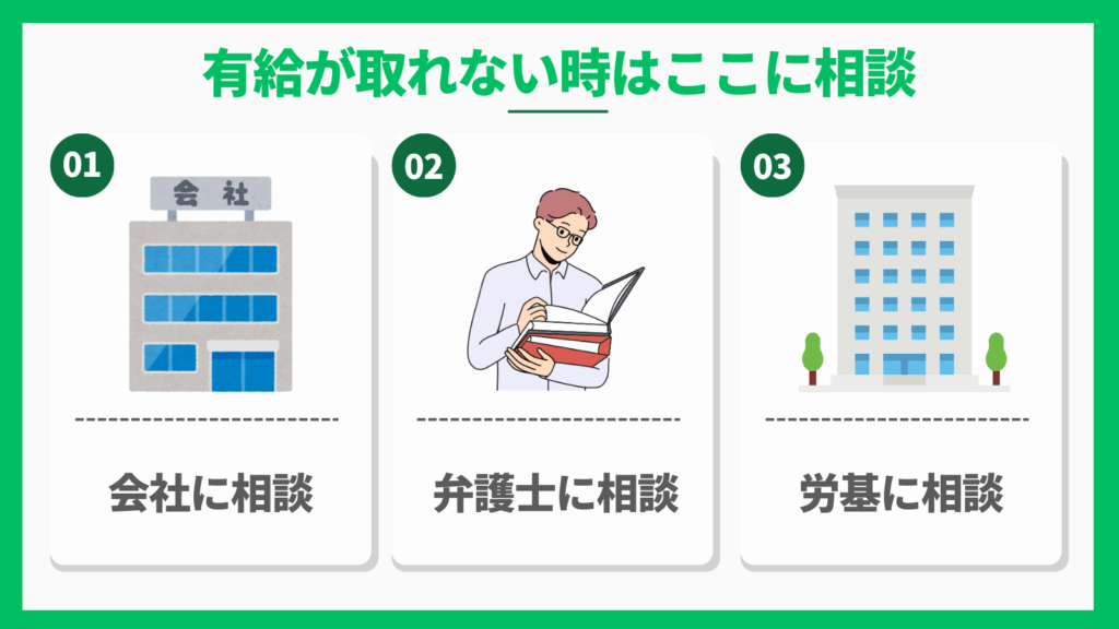 ここでは、有給が取れない際の主な相談先とそれぞれのアプローチ方法について解説します。