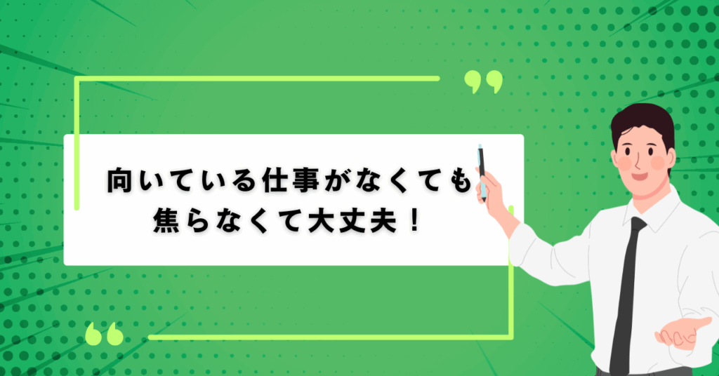 しかし、向いている仕事が見つからないからといって焦る必要はありません。
