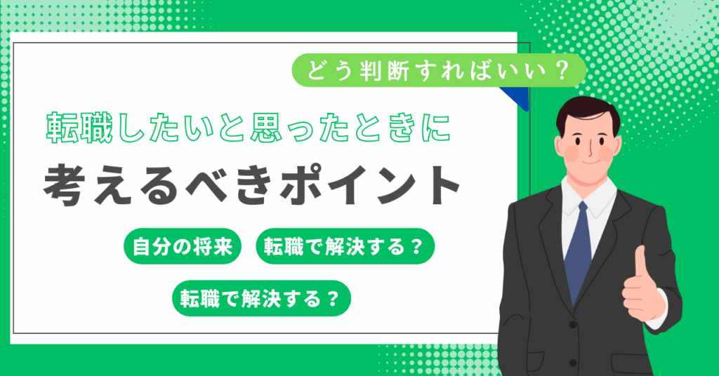 転職を考えるときには、どのようなポイントがあるのか見ていきましょう。
