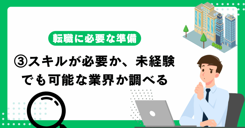 - スキルが必要か、未経験でも可能な業界か調べる