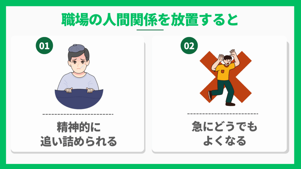 職場の人間関係の問題を「そのうち良くなる」と放置し続けると、最終的に傷つくのは自分自身です。